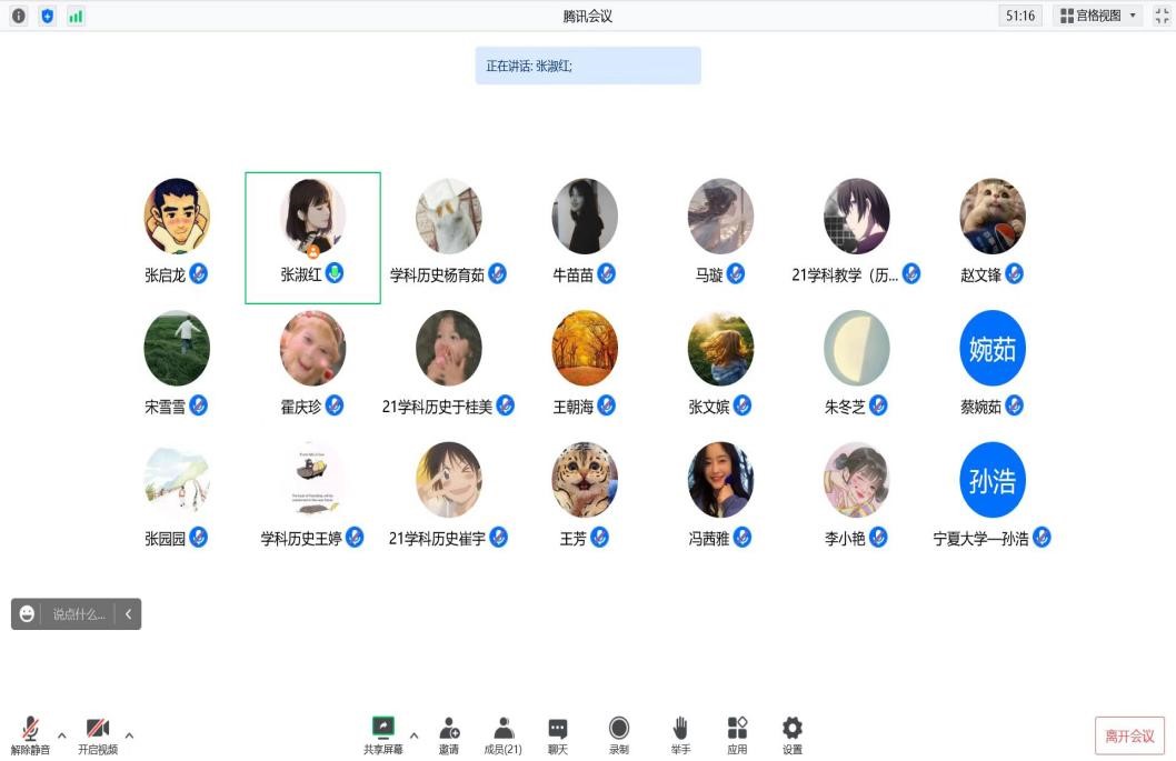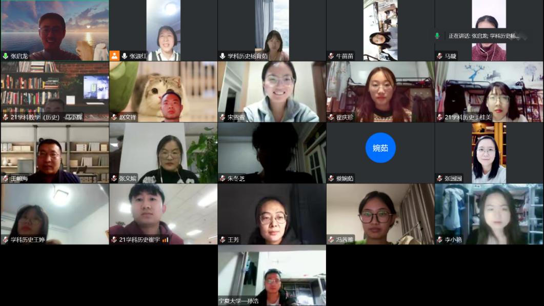 2022年11月22日晚上7点,21级学科教学(历史)专业的研究生以线上会议的形式开展了中期考核汇报会议。本次会议由张淑红老师主持,参会老师有王朝海、张园园和张启龙几位导师。21级学科教学(历史)专业的17位同学先后进行了汇报。