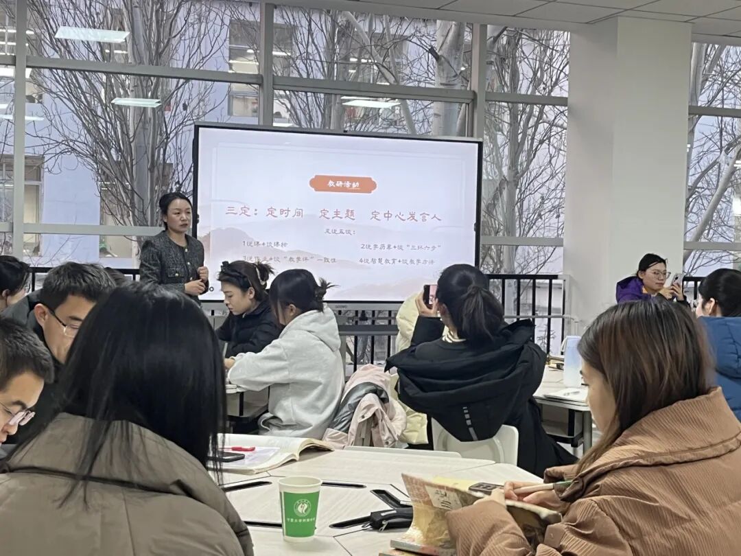12月9日上午,同学们参与了附中历史教研组的教学研讨会。教研会由附中张盼盼老师主持,她系统阐述了教研活动应遵循的“三定五谈”原则,并梳理了附中本学期所有教研活动的主题与成果,为同学们展示了中学教研工作的系统性与延续性。张盼盼老师还重点分析了新课标的最新变化,引导师范生认识到备课与教学必须紧跟课标精神,动态调整教学设计,以便更好地落实学科核心素养。