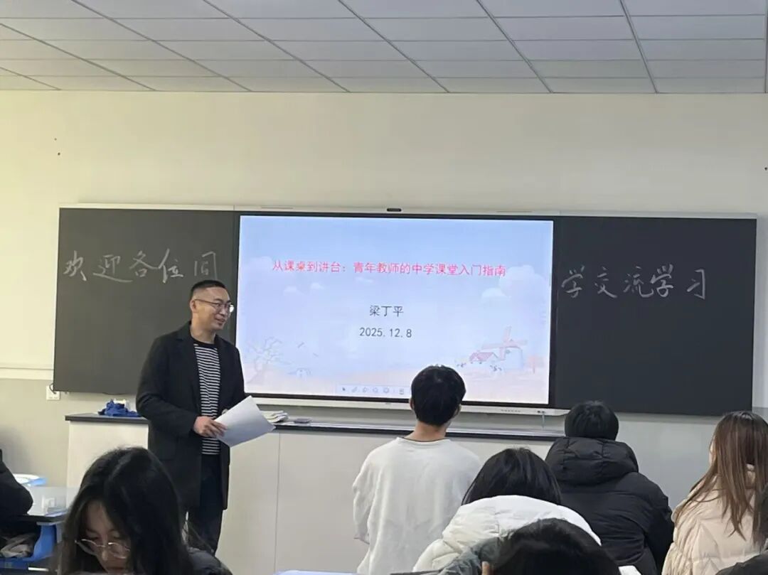 12月8日上午,附中梁丁平老师开展题为《从“课桌”到“讲台”:青年教师的中学课堂入门指南》的讲座,以“员工喜欢什么样的课”为引,启发大家完成从员工到教师的思维转变,并针对新教师常见困境提出实用建议。