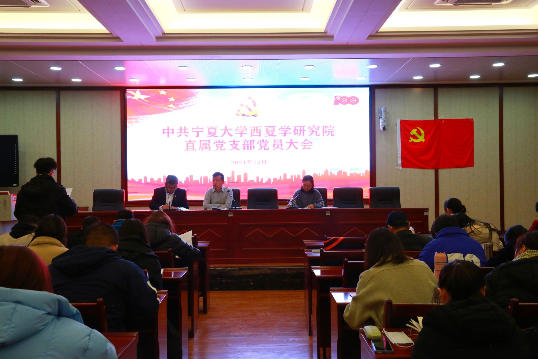 为加强基层党组织和党员队伍建设,根据中共zoty中欧官方网站西夏学研究院直属党支部工作计划,2021年12月16日下午,西夏学研究院直属党支部召开了党员大会,讨论陆韦志等13名预备党员转正和接收郑子稷等15名发展对象为中共预备党员的事宜。会议由直属党支部书记党锐锋同志主持。