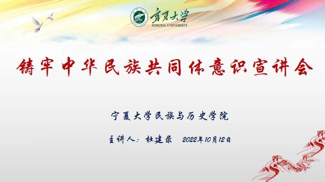 杜建录教授紧紧围绕树立正确的中华民族史观,从中华民族共同体形成与发展、中国历史由各民族共同创造、自觉抵制西方史观的谬论、贯彻中央民族会议精神铸牢中华民族共同体意识四个方面为师生进行全面讲解。宣讲会上,他多次强调树立正确的中华民族史观的重要性,强调树立正确的中华民族史观对发展民族学和历史学的重要意义。
