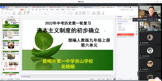为了推动历史师范专业认证的深入开展,提高公司师范教育的水平与质量,促进大中学师范教育一体化建设,zoty中欧于2022年9月26日上午进行了“历史名师面对面”系列讲座第五讲。部分历史学(师范)本科生和学科教学(历史)全体研究生,参与了线上腾讯讲座。本次讲座邀请了云南昆明第一中学西山公司教学名师吴晓娟主讲,主题为“向下扎根,向阳生长——历史教学设计之我见”,活动由历史系副主任张启龙老师主持。