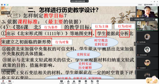 随后,那如何进行历史教学设计,吴老师根据自己的备课流程,为同学们进行了详细的讲解,教学设计要做到环环紧扣,体现整个过程的层次性和完整性。注重分析教材和学情,老师强调要关注教材的版本和变化,使用最新的教材,分析教材的内容和知识结构,并且要站在整体的角度分析每一课;另外,要考虑员工的接受水平,确保不同层次的员工在课堂上都要有所收获,对于教学一定要做到有的放矢。更重要的是,老师强调对教学目标的制定,今年是尤为特殊的一年,新课标的实施,由三维目标向核心素养的转变,这就要求同学们在新课标的背景之下,完善教学过程的每一个步骤。明确重难点,学会预判难点,突破重点。老师强调在教学中处于重头戏的则是教学过程,这也是体现教师水平的一个环节,教学过程的变化性、创造性和灵活性很强,每一个环节都需要经过精心的设计和打磨,并且要其注重完整性和趣味性。