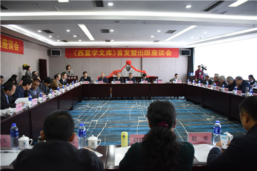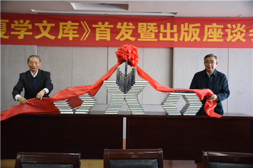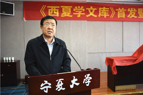 自治区原政协副主席陈育宁,中国社科院学部委员史金波为《西夏学文库》揭幕。