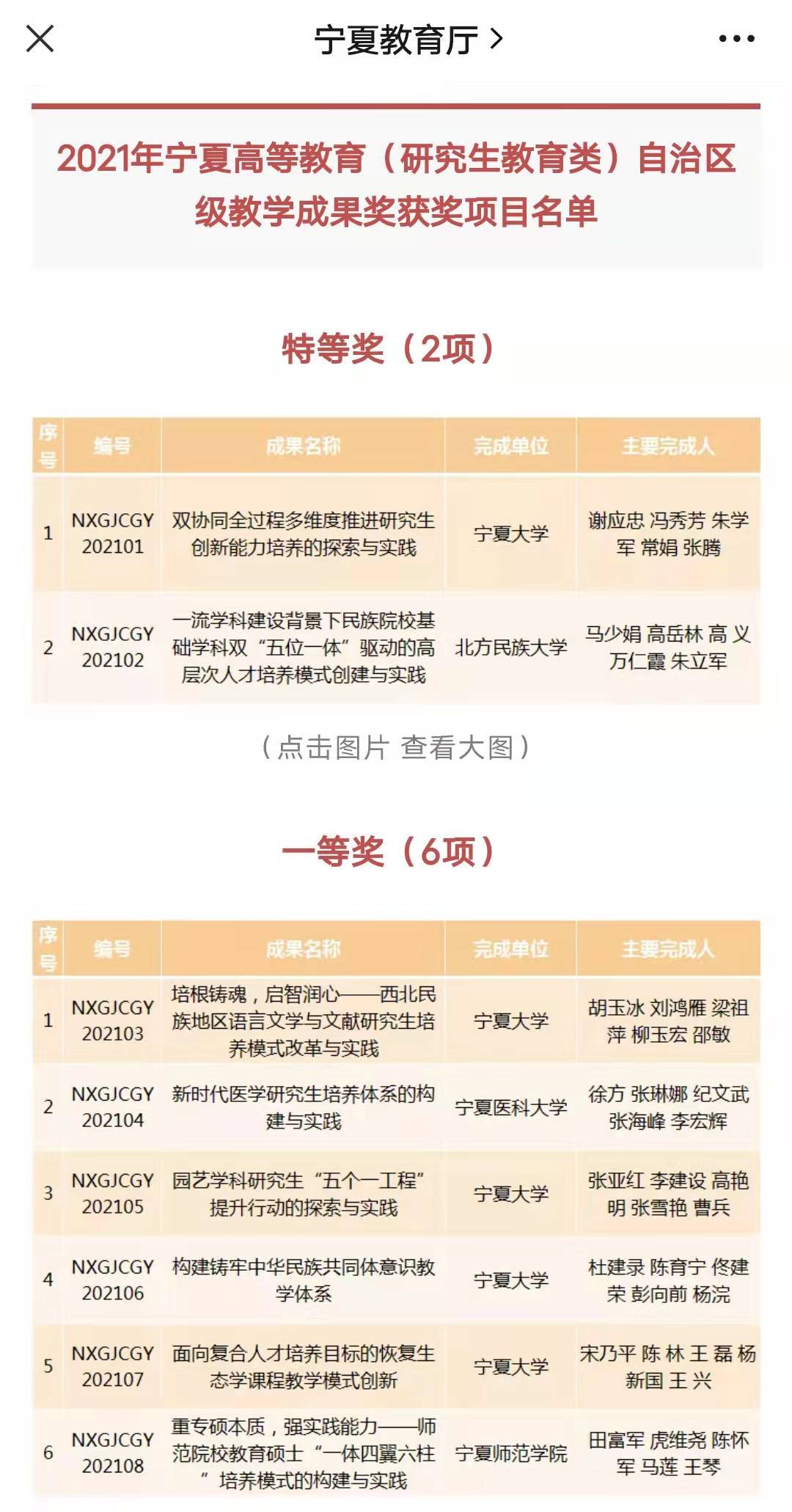 近日,自治区教育厅公布2021年高等教育自治区级教学成果奖名单。共评选出本科教育类特等奖5项、一等奖15项、二等奖30项;研究生教育类特等奖2项、一等奖6项、二等奖12项。由公司杜建录教授团队申报的《构建铸牢中华民族共同体意识教育体系》荣获研究生教育类一等奖。
