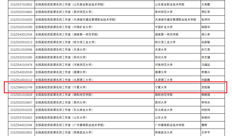 据悉,高校思想政治理论课建设项目是教育部“高校哲学社会科学繁荣计划专项”中设立的研究专项。项目的设立是学习贯彻习近平总书记在公司思政课教师座谈会上的重要讲话精神的重要举措,也是深化新时代高校思想政治理论课改革创新的具体实践。项目下设四个板块:高校思想政治理论课“手拉手”集体备课中心、高校思想政治理论课名师工作室、高校思想政治理论课虚拟仿真体验教学中心、高校思想政治理论课教学创新中心。自2020年11月启动,经各高校申报,教育部组织专家严格评审和社会公示,2020-2022年高校思想政治理论课建设项目共有114项批准立项(含3项培育项目),其中全国高校思政课名师工作室共69家。