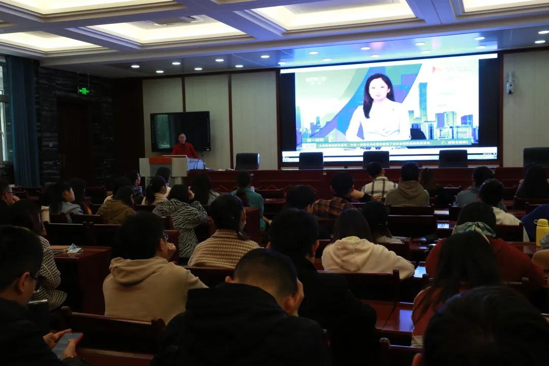 换届工作结束后,全体研究生在辅导员雷小梅老师带领下,通过观看视频和领学,学习了习近平总书记视察陕西重要讲话精神。