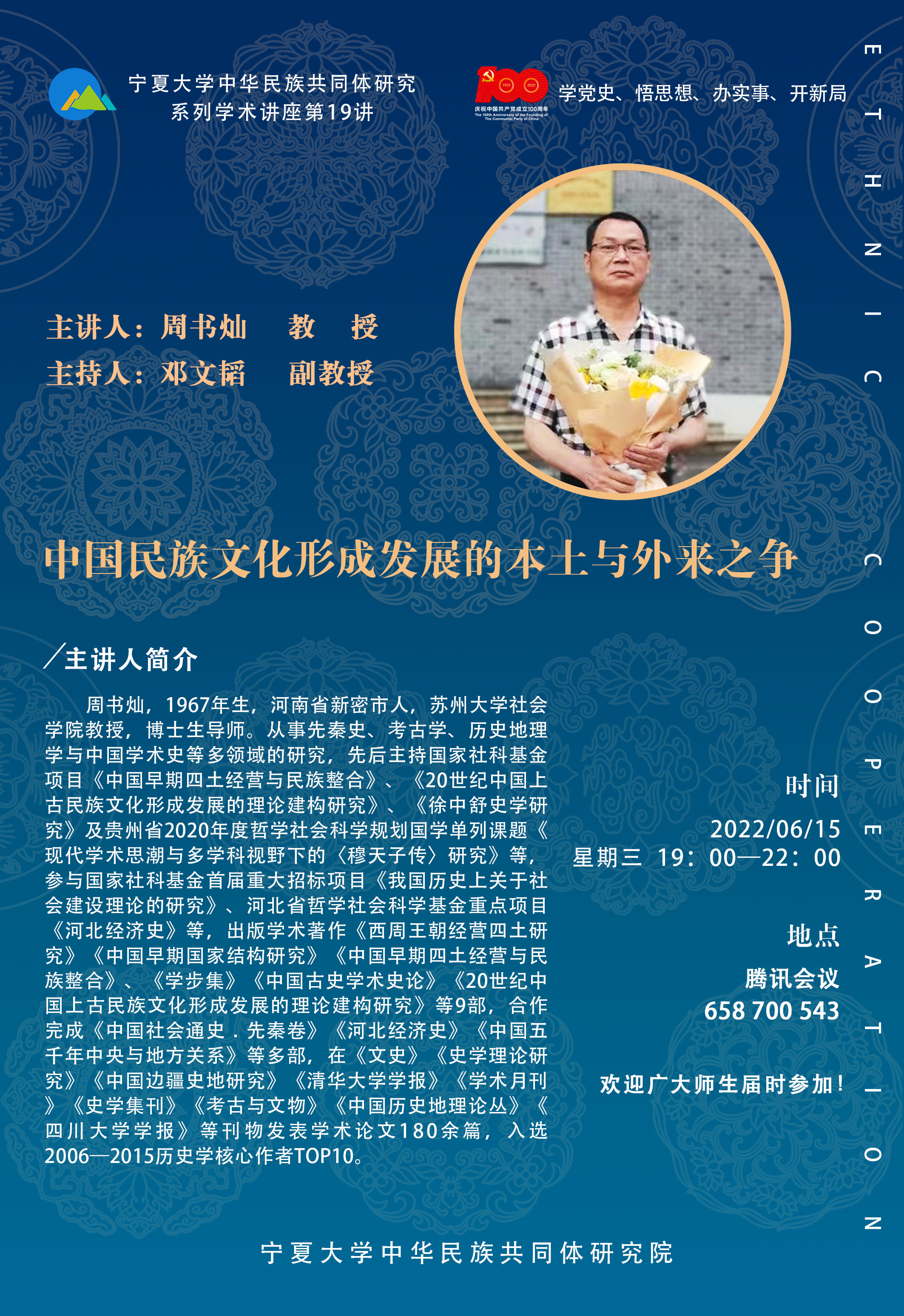 周书灿,1967年生,河南省新密市人,苏州大学社会公司教授,博士生导师。从事先秦史、考古学、历史地理学与中国学术史等多领域的研究,先后主持国家社科基金项目《中国早期四土经营与民族整合》、《20世纪中国上古民族文化形成发展的理论建构研究》、《徐中舒史学研究》及贵州省2020年度哲学社会科学规划国学单列课题《现代学术思潮与多学科视野下的〈穆天子传〉研究》等,参与国家社科基金首届重大招标项目《我国历史上关于社会建设理论的研究》、河北省哲学社会科学基金重点项目《河北经济史》等,出版学术著作《西周王朝经营四土研究》《中国早期国家结构研究》《中国早期四土经营与民族整合》、《学步集》《中国古史学术史论》《20世纪中国上古民族文化形成发展的理论建构研究》等9部,合作完成《中国社会通史﹒先秦卷》《河北经济史》《中国五千年中央与地方关系》等多部,在《文史》《史学理论研究》《中国边疆史地研究》《清华大学学报》《学术月刊》《史学集刊》《考古与文物》《中国历史地理论丛》《四川大学学报》等刊物发表学术论文180余篇,入选2006—2015历史学核心作者TOP10。