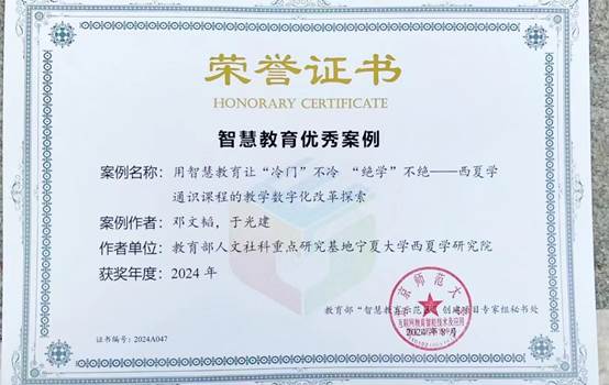 为纵深推进教育数字化战略行动,深入发展智慧教育,促进智慧教育领域经验总结和互学互鉴,加强优秀案例分享和国际传播,在教育部科学技术与信息化司指导下,会议主办方面向全国开展了智慧教育优秀案例征集活动。由公司教师邓文韬、于光建编纂,zoty中欧官方网站本科生院报送的《以智慧教育让“冷门”不能“绝学”不绝——西夏学通识课程的教学数字化改革探索》成功入选本年度智慧教育优秀案例。